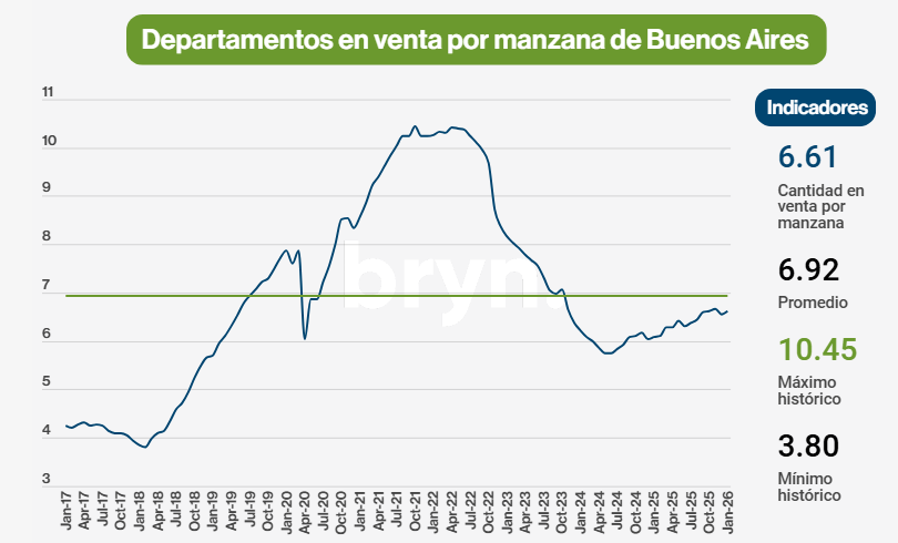 Si miramos los últimos meses, el número se mantiene bastante estable. No estamos viendo un crecimiento fuerte de oferta (lo que indicaría presión bajista en precios), pero tampoco una caída brusca que marque escasez.